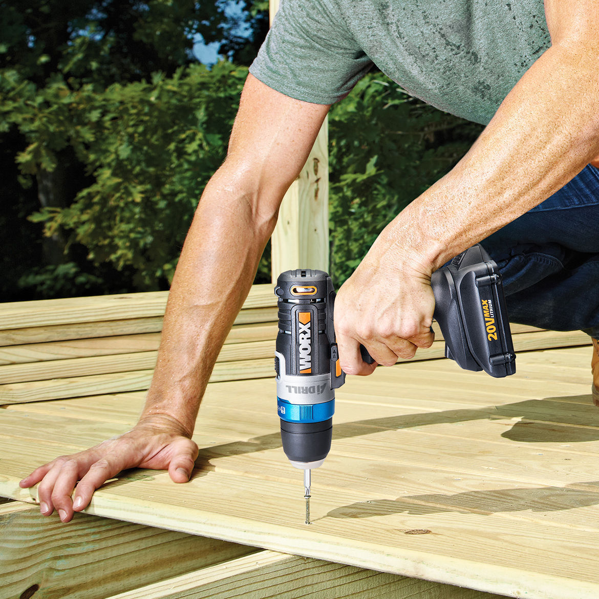 The first drill with Advanced Intelligence Technology; the Worx® Ai Drill gives you the confidence to tackle any drilling or driving project. Innovations like BitLock™ Safe Drive and Pulse Assist let you instantly tighten bits, drive a screw to just the right depth, and even remove stripped screws like a pro.